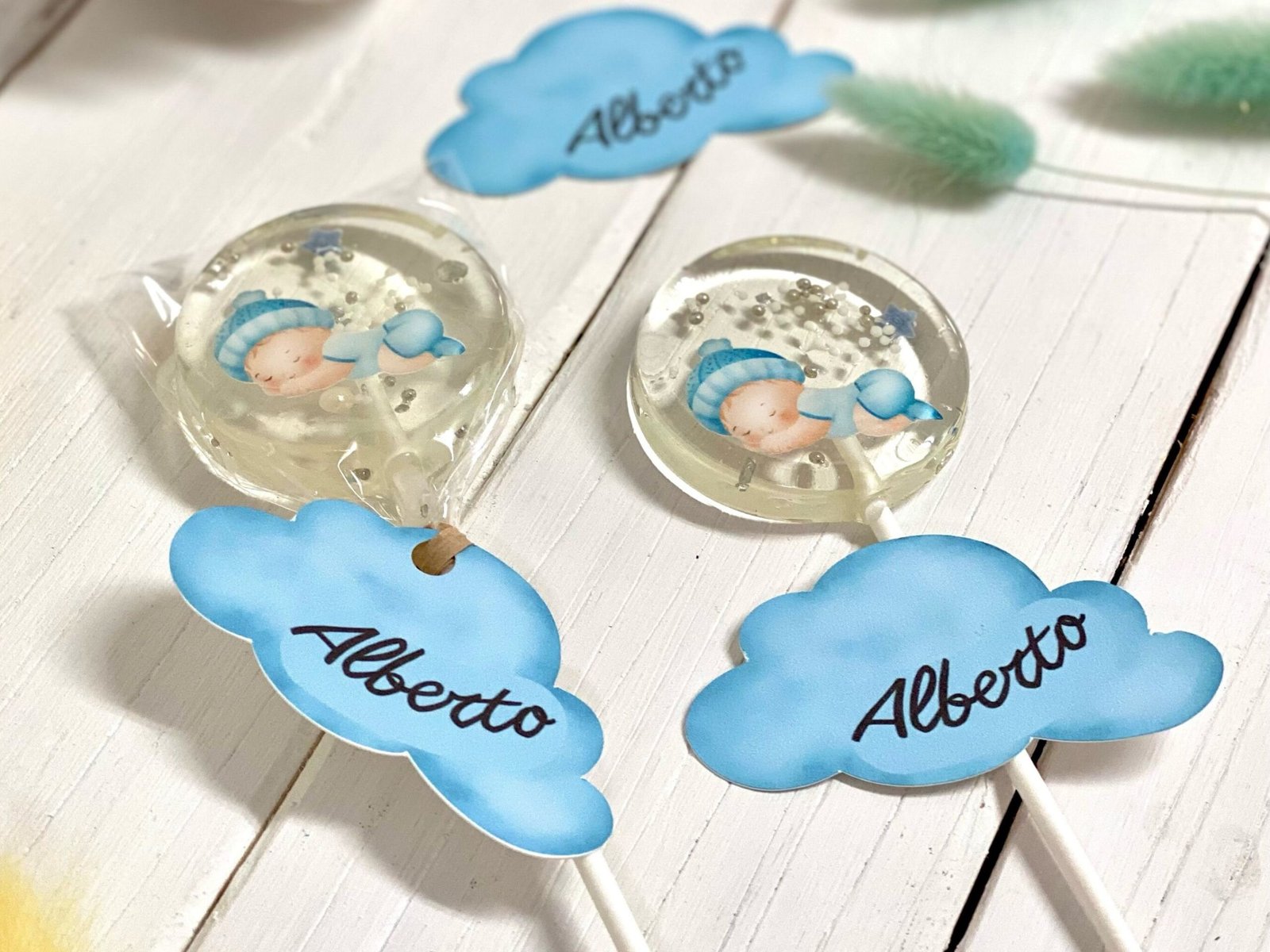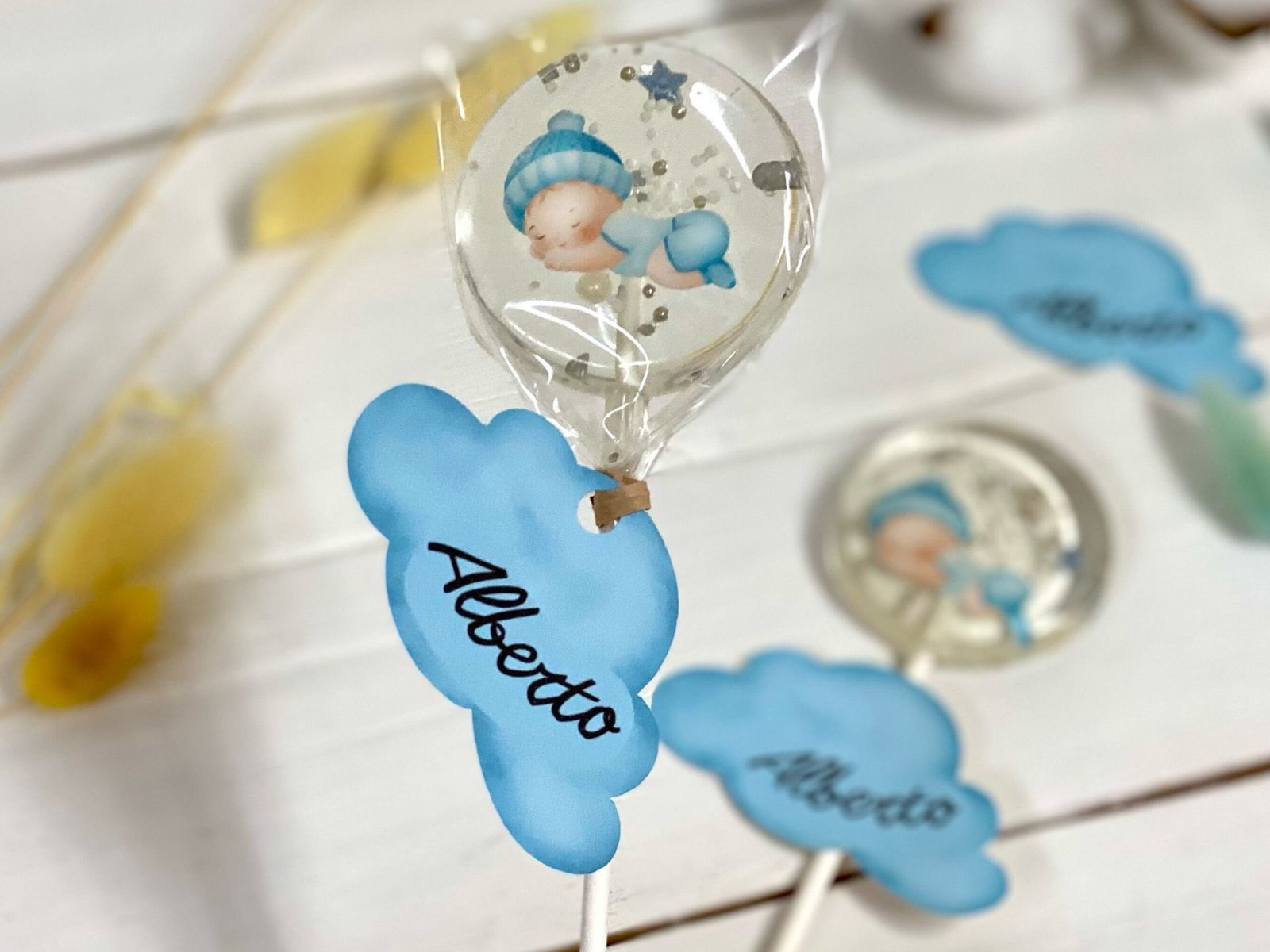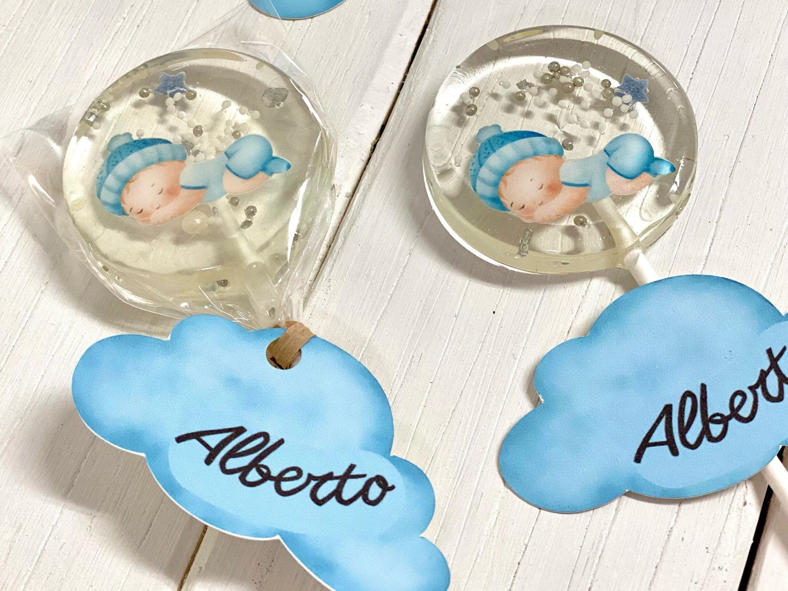 Nuestras piruletas baby shower están hechas a mano con isomalt de la más alta calidad.