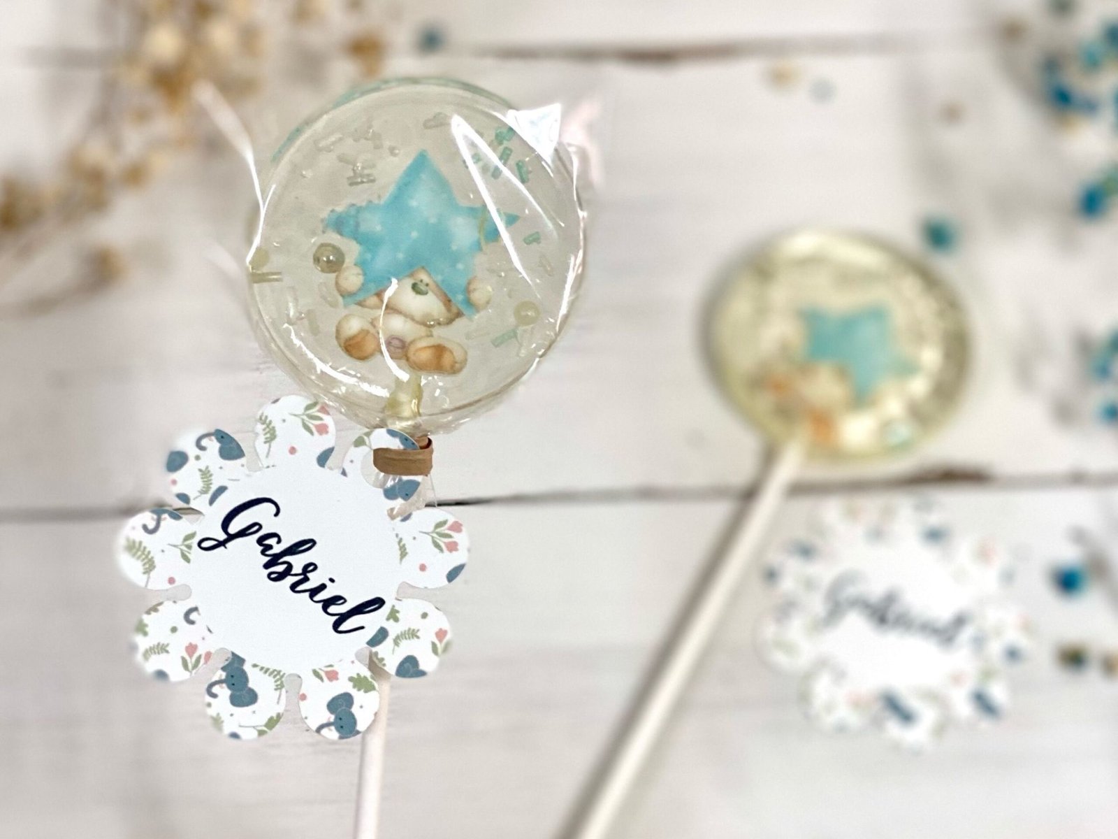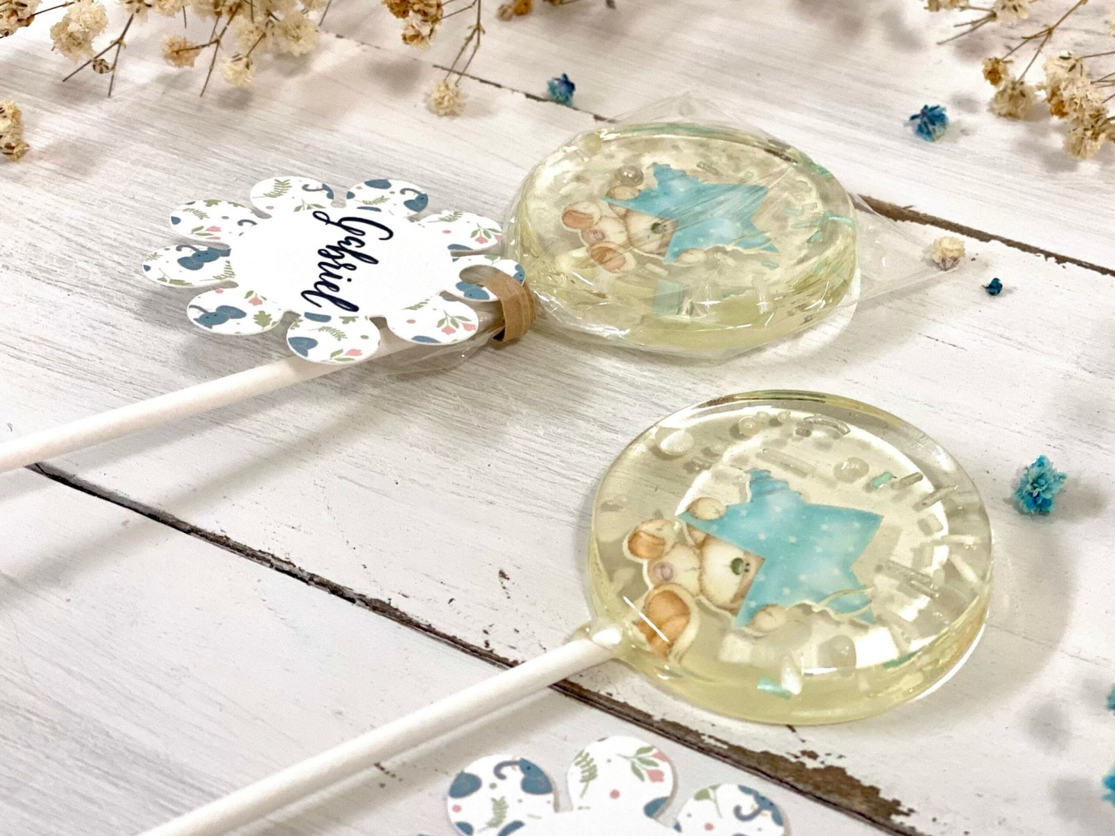 Nuestras piruletas baby shower están hechas a mano con isomalt de la más alta calidad.