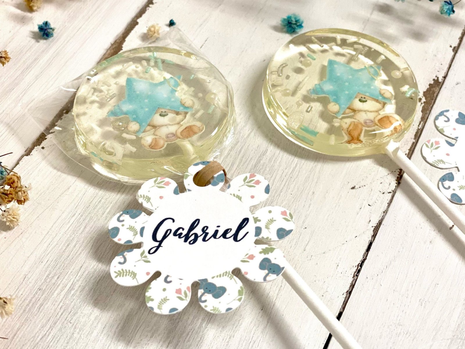 Baby shower piruletas osito de peluche estrella azul caramelo duro hecho a mano