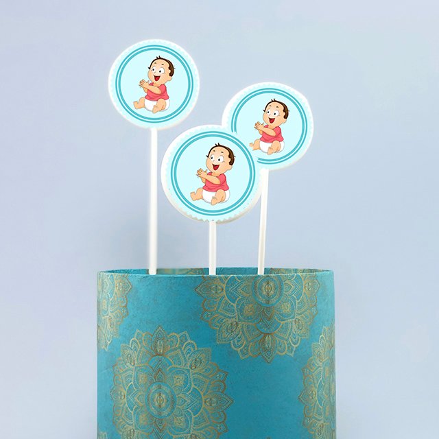 Etiquetas comestibles de bautizo con la imagen de un niño moreno