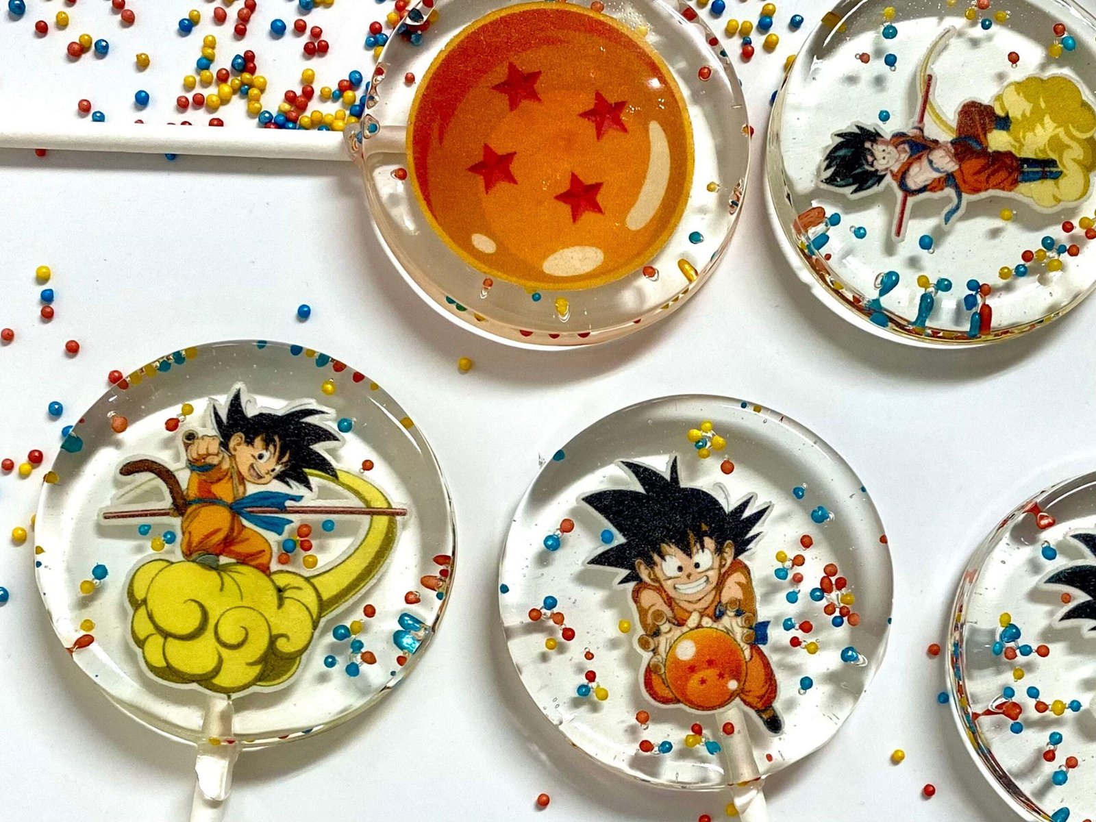 🔥 ¡Dale potencia a tus momentos dulces con nuestras piruletas Isomalt Dragon Ball Z transparentes! 🍭⚡