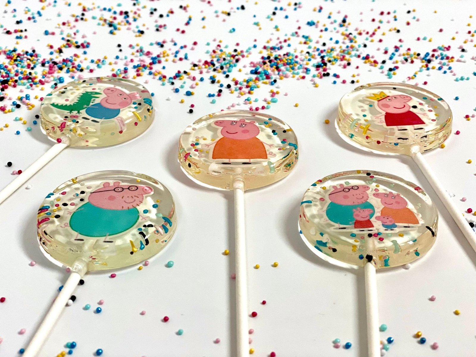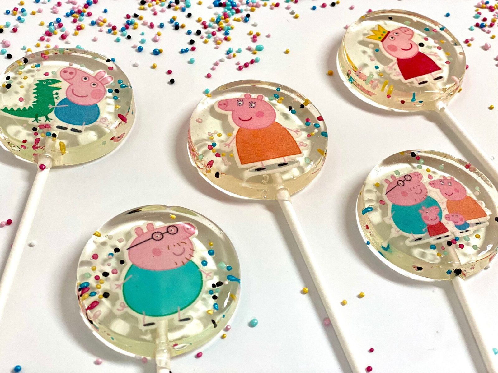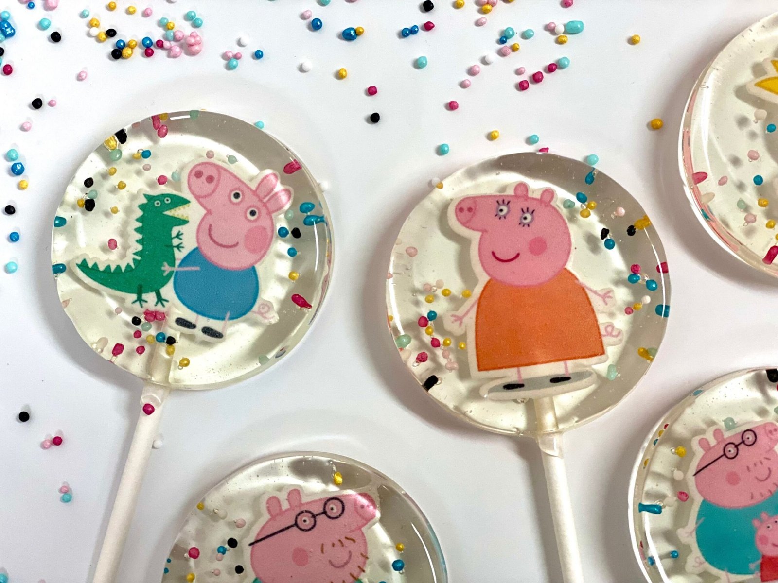 Cada piruleta presenta encantadores diseños inspirados en Peppa Pig y sus amigos, llevando la diversión y la risa del querido programa a tu paladar.